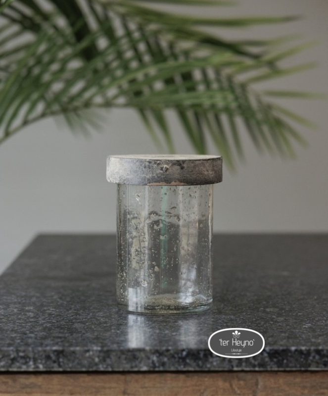 Glazen windlicht / pot met deksel, maat L