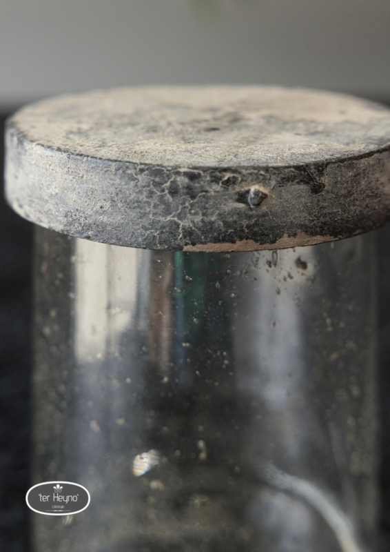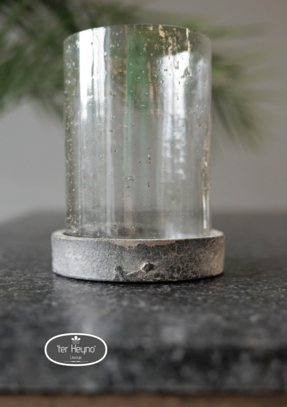 Mooi glazen windlicht, ook te gebruiken als pot met een deksel. Helder steenslag glas met een houten deksel, afgewerkt in de Grey Finish. Er is geen 1 windlicht hetzelfde, het ene windlicht heeft wat meer steenslag dan de andere.