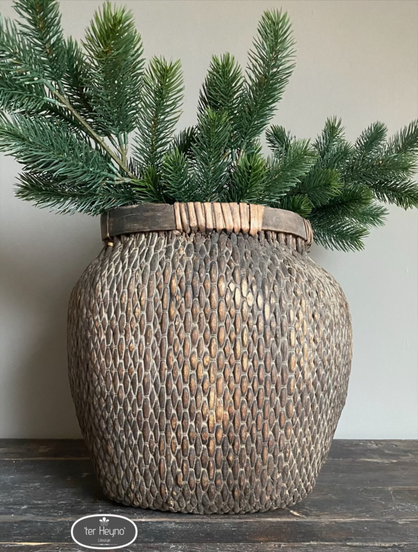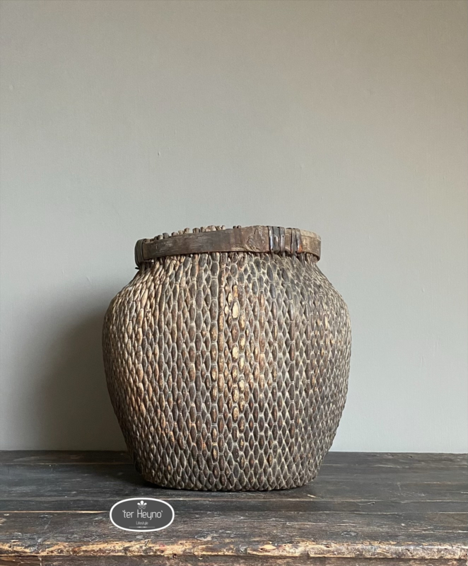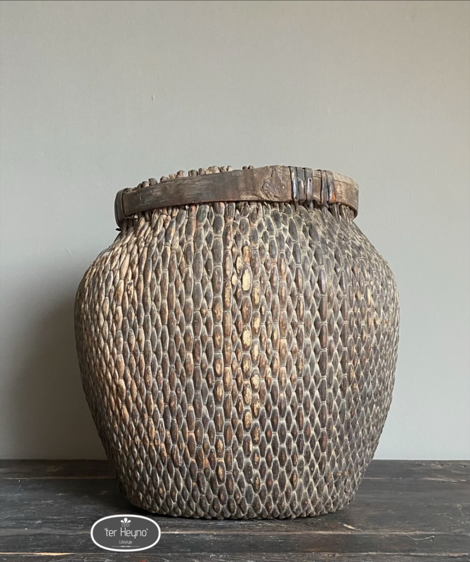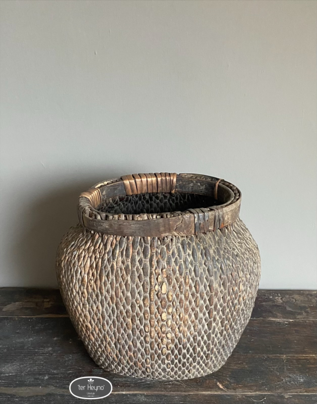 Oude Chinese rieten vismand. Mooie verweerde uitstraling.