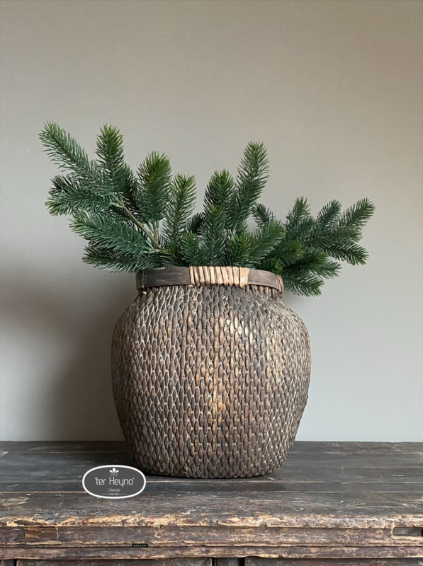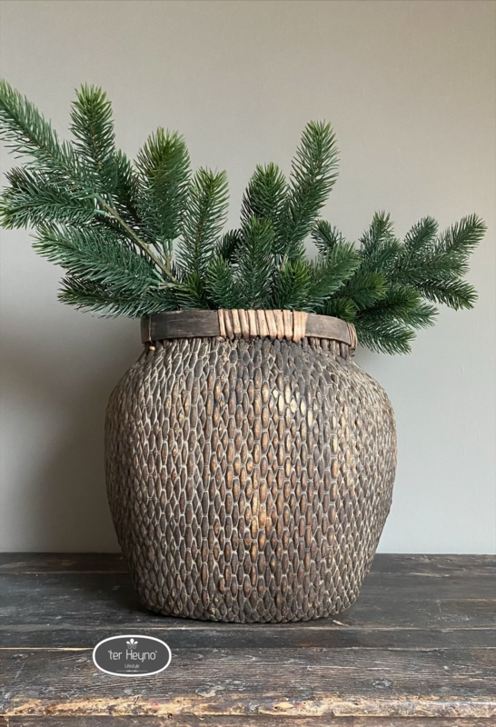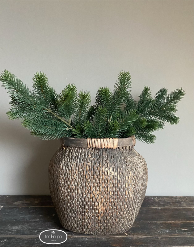 In de mand op de foto zijn 3 kunst dennentakjes gebruikt. Deze zijn ook te bestellen.